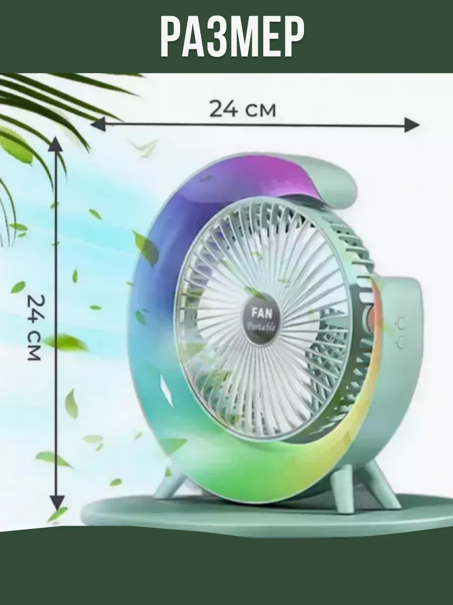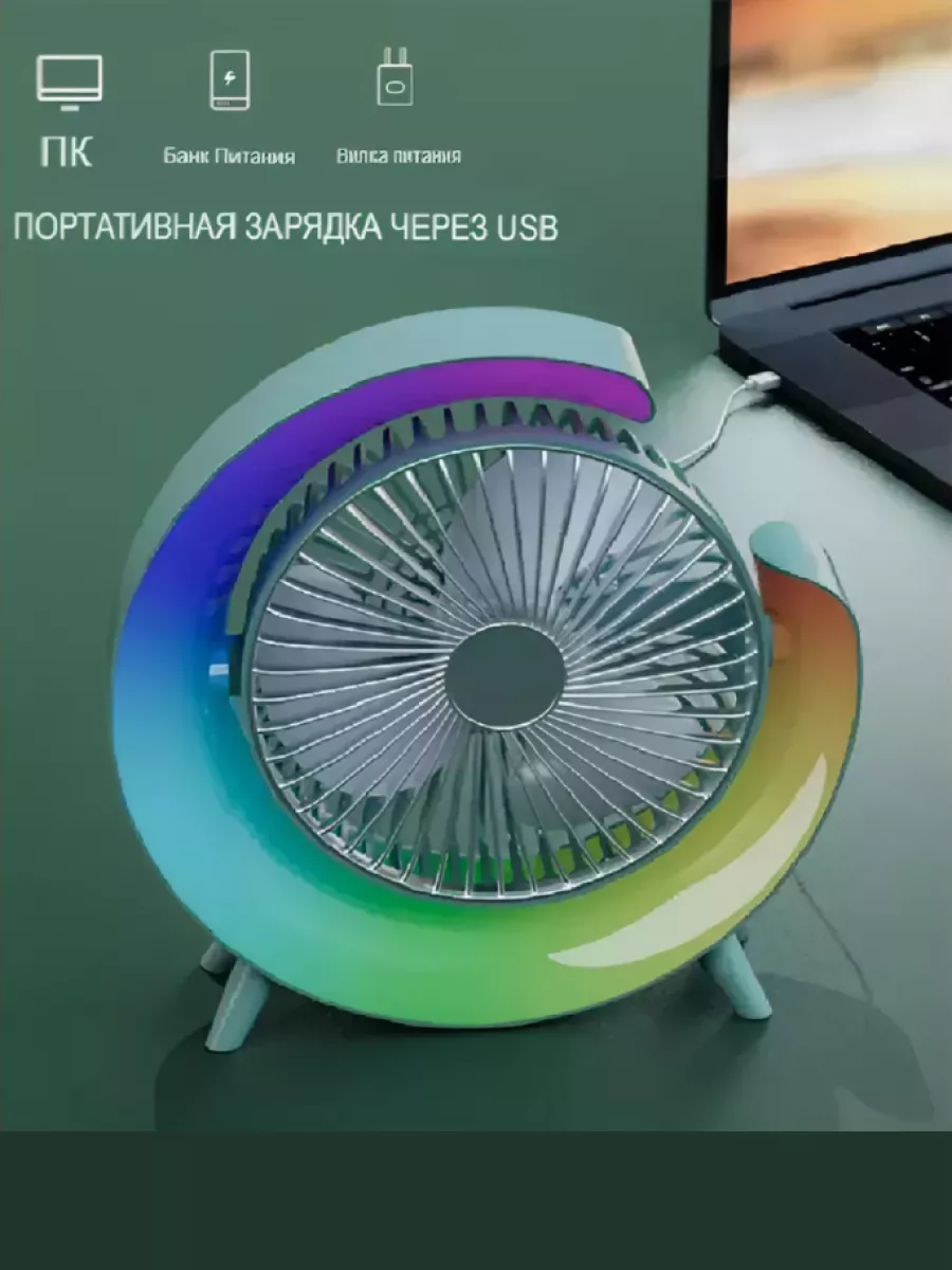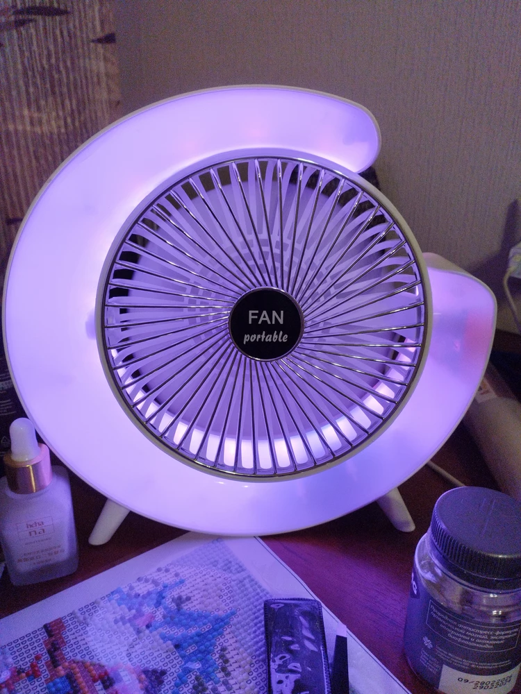 Идеальный вентилятор для лета! Очень понравилось, что он не только охлаждает, но и служит как ночник. Световые режимы просто класс — особенно "дышащий" и разноцветный. Работает тихо, не мешает спать. Компактный, легко переставляю с рабочего стола на прикроватную тумбочку. Реально спасение в жару!