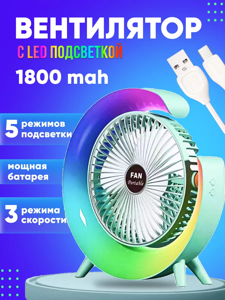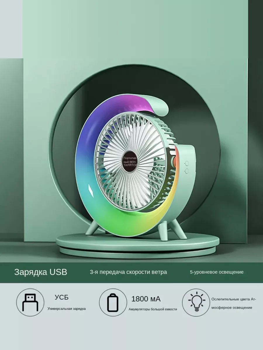 Вентилятор мини портативный собрал все плюсы для комфорта в жаркие дни лета предлагая пять уникальных режимов освещения: белый, зеленый, синий, дышащий и разноцветный. Конструкция с поворотом на 3,180 °. Благодаря гибкой функции поворота на 180 ° этот небольшой охлаждающий вентилятор позволяет настроить его под наиболее удобным углом, обеспечивая оптимальное охлаждение и позволяя наслаждаться освежающим ветерком с любого направления.